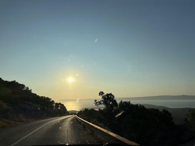 Po vseh prigodah zadnjega tedna smo se končno odpravili proti morju. Do naše mirne vasice je kar 9-10 ur vožnje in ker smo potovali čez dan, je celo pot vozil Jure. Psa sta mirno spala, dvakrat sva ju spustila ven, jima dala vodo in tako smo prispeli do našega apartmaja.